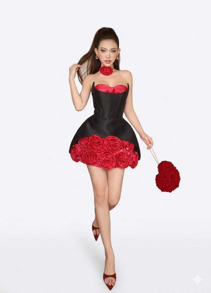 ĐẦM NGẮN – Crimson Bloom Corset Dress